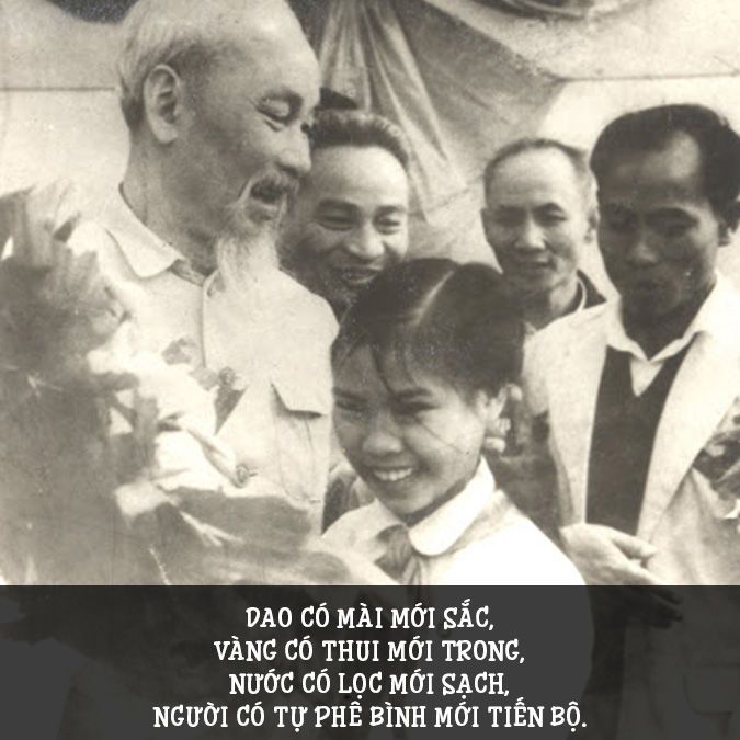 Đạo có mài mới sắc, Vàng có thủy mới trong, Nước có lọc mới sạch, Người có tự phê bình mới tiến bộ