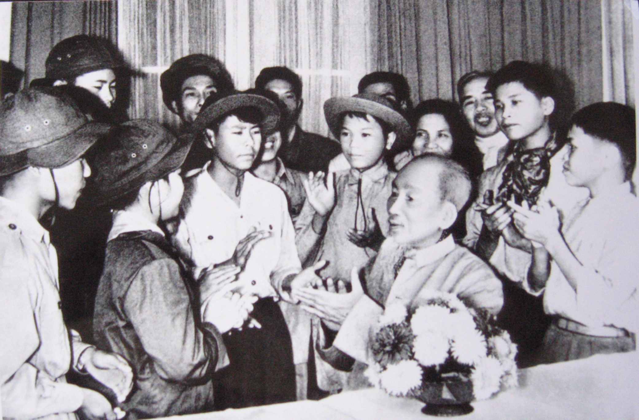 Bác Hồ với các cháu thiếu nhi dũng sĩ miền Nam ra thăm miền Bắc (13/02/1969).